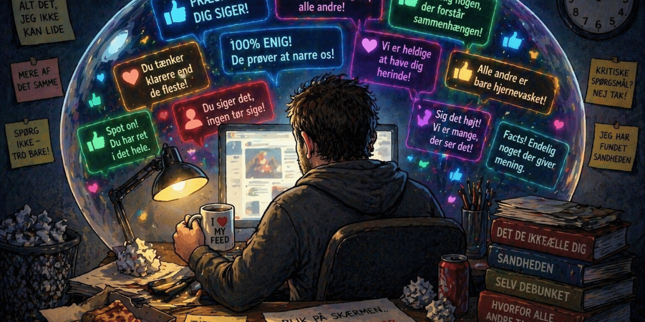 Men selv om det ikke ”gik galt” den­ne gang, viser eksemp­let her med al tyde­lig­hed, at vi ikke bare kan læne os til­ba­ge, og tage alt hvad AI skri­ver for gode varer. Ellers får vi bare mere af det, der pas­ser til vores over­be­vis­ning – og får stil­le og roligt forvræn­get vores ver­dens­syn i en grad, der i vær­ste fald kan være direk­te inva­li­de­ren­de.