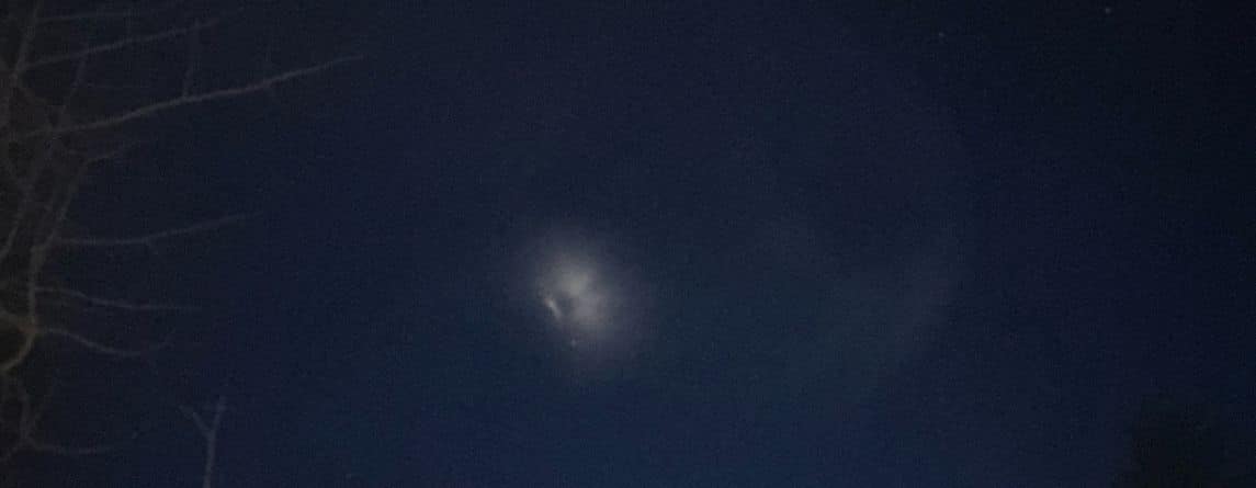 Søndag d. 11. januar 2026 lige før aftensmadstid blev den frostklare aftenhimmel over Danmark oplyst af et særegent fænomen, der på et tidspunkt lignede en gennemsigtig fuldmåne med en ordentlig bums i ansigtet nederst til venstre.